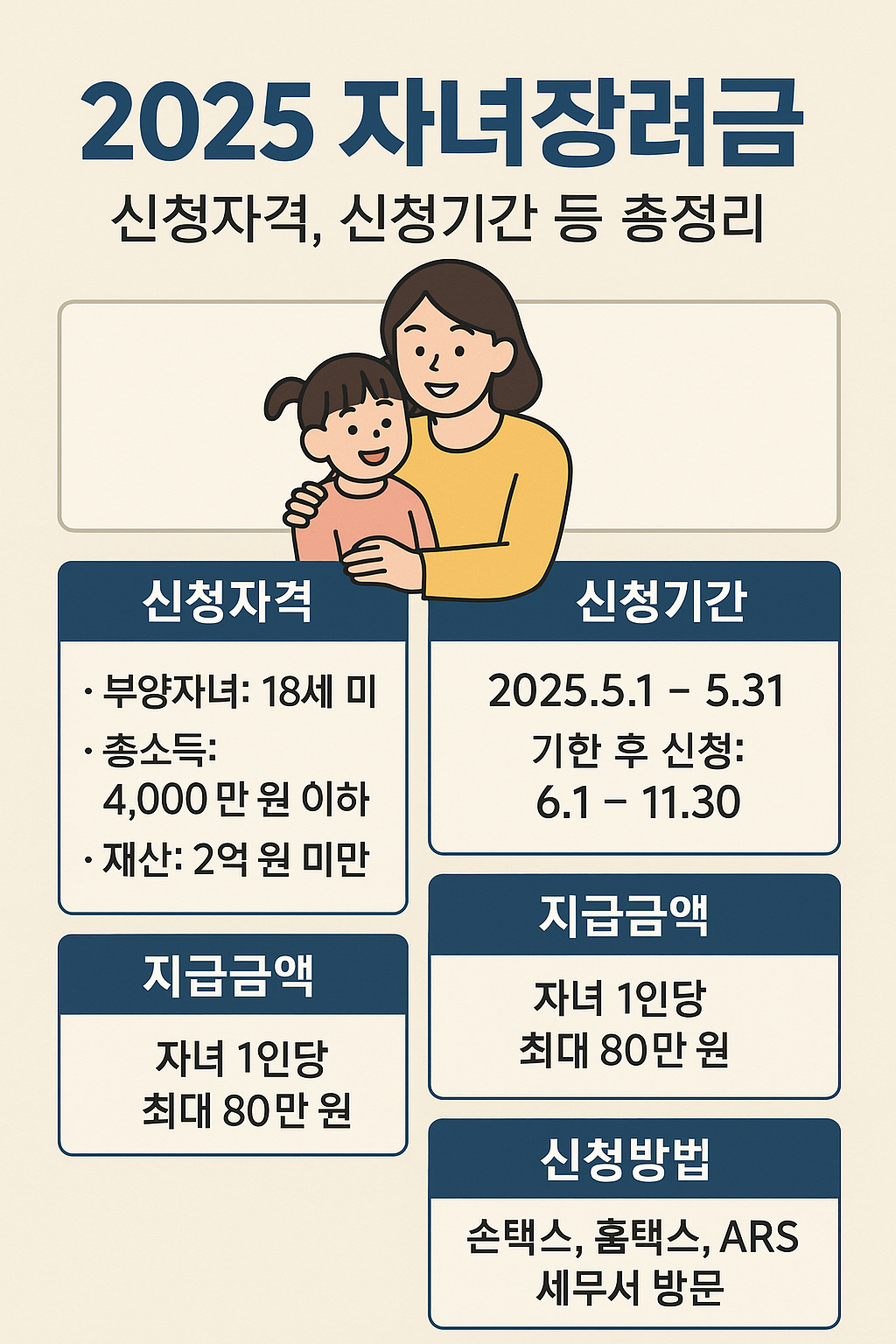 2025 자녀장려금으로 양육의 부담을 조금이나마 덜어보세요.